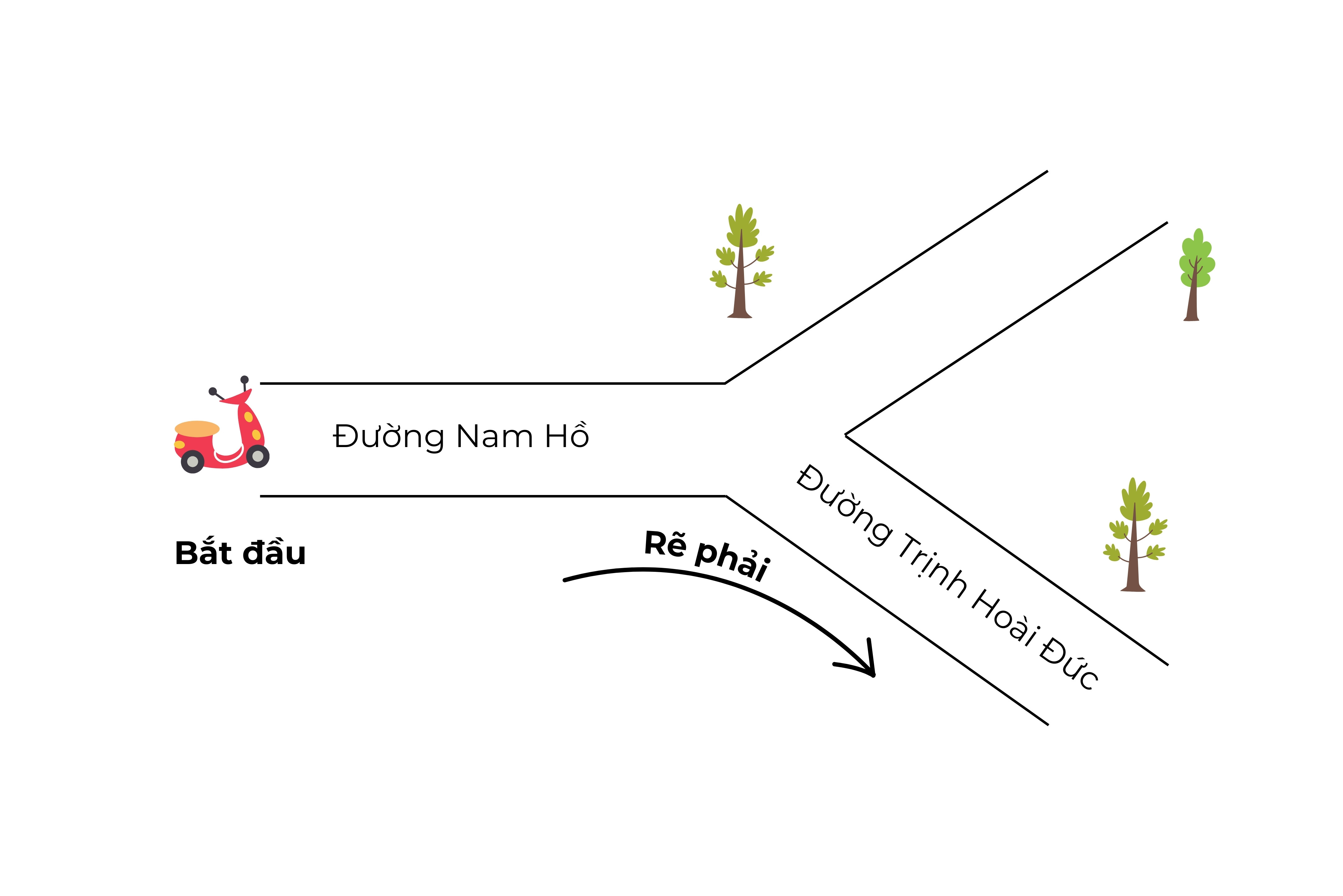 Vào đường Nam Hồ > đầu đường có Ngã Ba rẻ phải vào đường Trịnh Hoài Đức