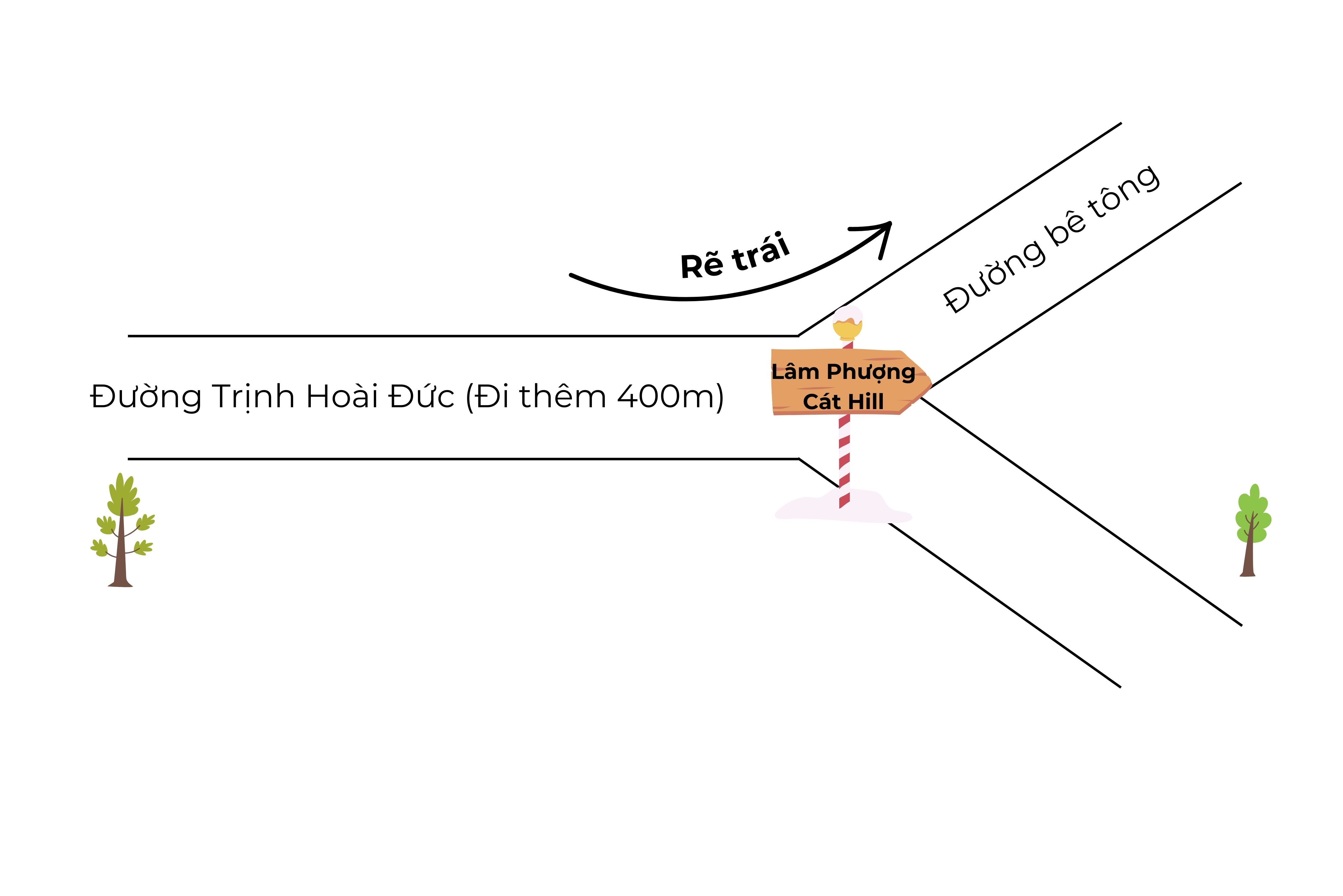 Đi 400m gặp 1 ngã ba có biển hiệu LÂM PHƯỢNG CÁT HILL rẻ trái vào đường betong