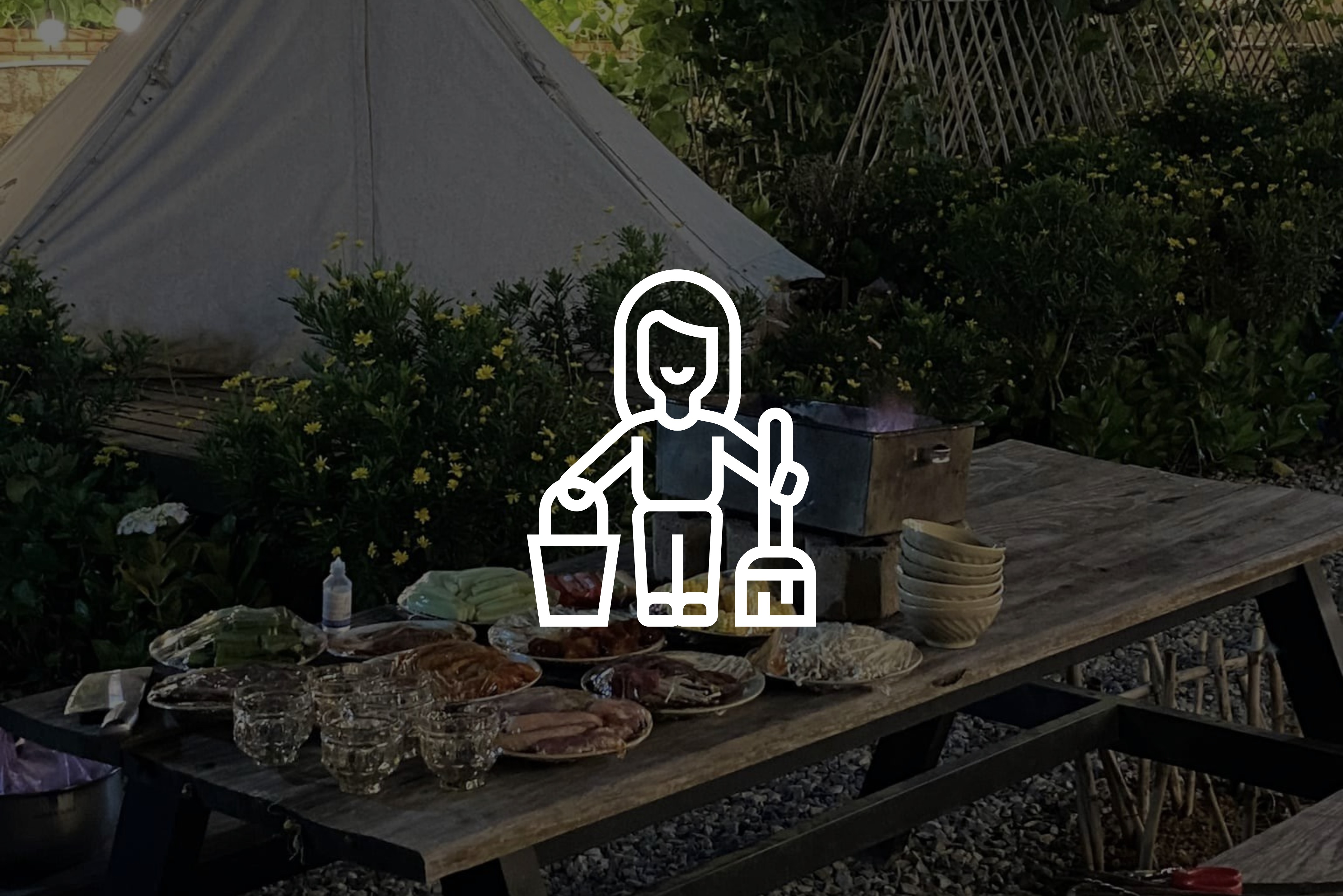 Sau tiệc KH tự vệ sinh khu vực chơi (dọn vệ sinh khu vực nướng, chén đủa vật dụng, đảm bảo vệ sinh sạch sau tiệc) > Nhà không phụ thu. Phí dọn dẹp vệ sinh cho ăn uống, BBQ : 100.000/người/tiệc